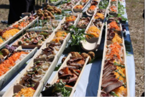 料理教室は、ピクニックコーディネーター、ランドスケープデザイナーでもある對中剛大(たいなかまさひろ)さんを招き、地域で採れた特産物や、地域で何気なく食べられている食材をおしゃれにアレンジし、洗練された都会の方に喜んでいただけるような料理にするため、地域の女性たちが中心に料理を学び、作られました。