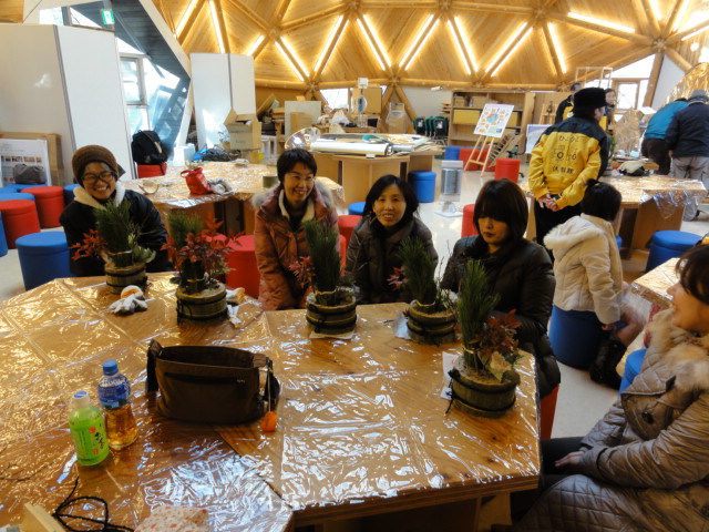 本日の「ミニ門松づくり」は、少し寒い中、晴天のもと外でおこないました。