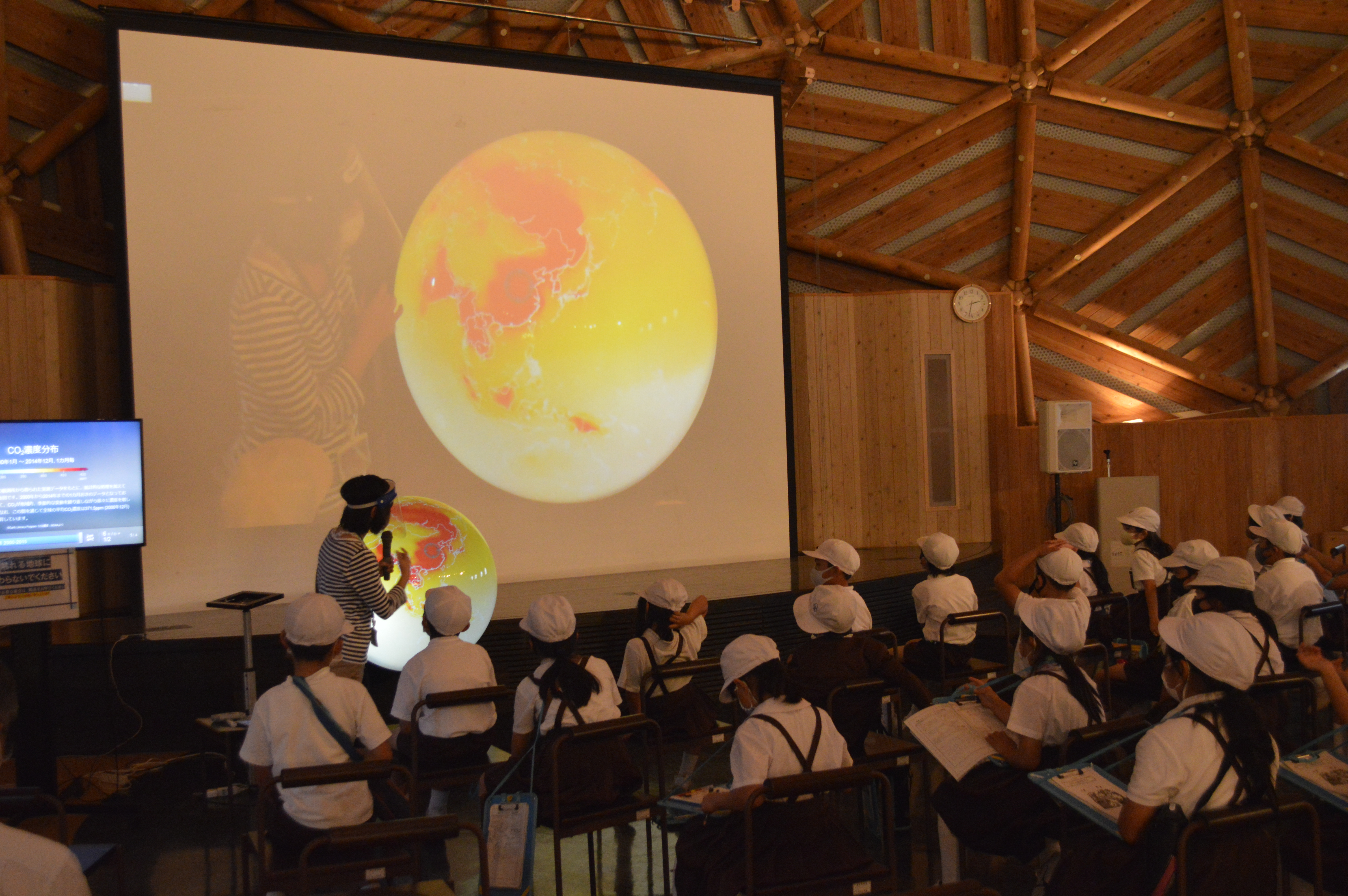 シアタールームで地球温暖化についての映像を見た後、触れる地球を使って環境学習をしました。その後、わんぱく広場の展示やおもちゃを使って遊びました。