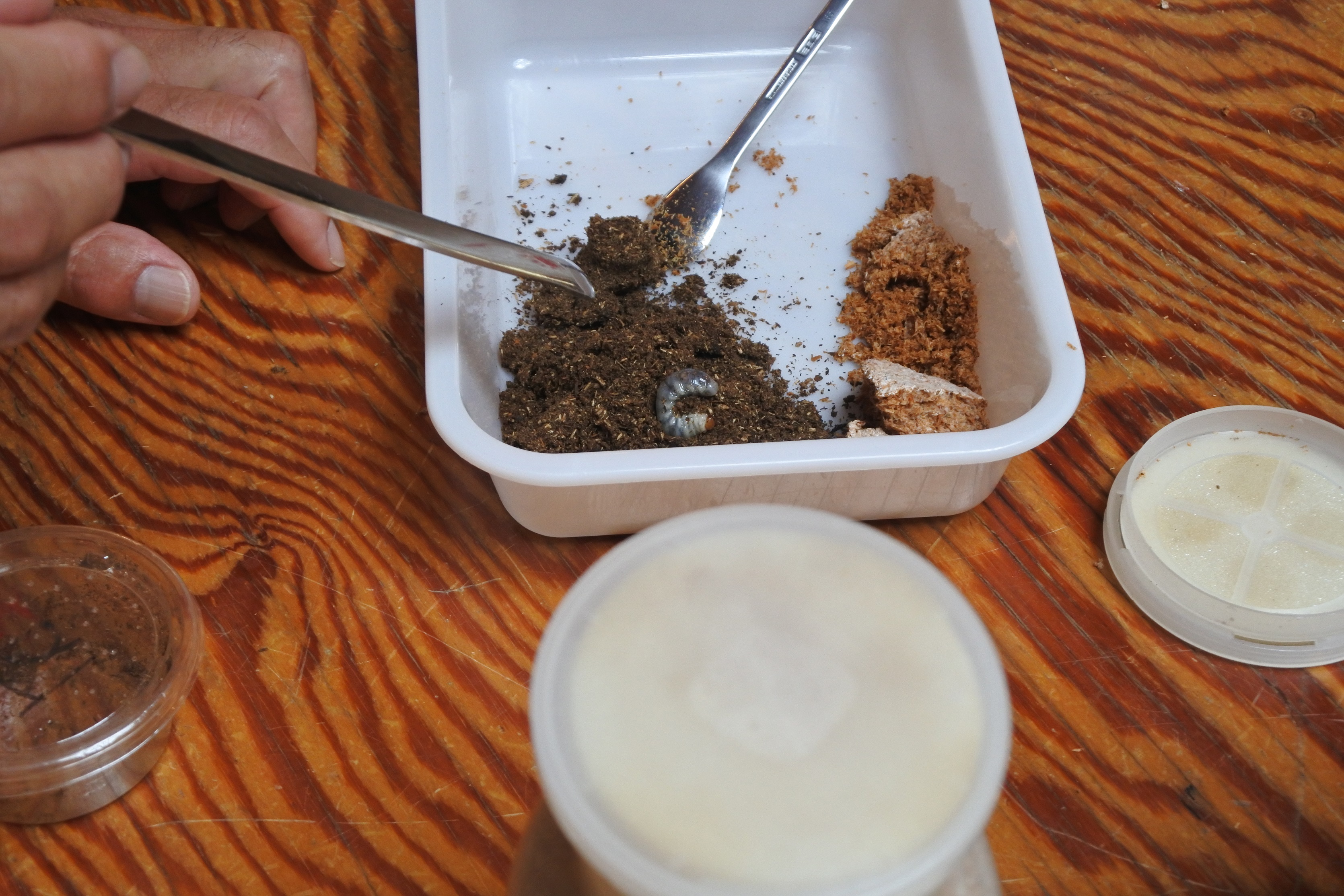 今回はクワガタ飼育についての説明、幼虫の確認等を行いました。この時期の幼虫はまだ小さいですが、1年後、どんな姿になっているか楽しみですね。