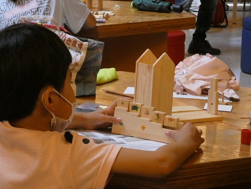 7月23日(土)、地球を救うきっかけともなる3つのきっかけともなる3つのテーマのひとつ「ものの命をいただきつくす」につながる「からくり貯金箱」づくりを実施しました。講師は、エコハウスサポーターの粟井さんです。サポートには、同じくエコハウスサポーターの筈井さんに来ていただきました。